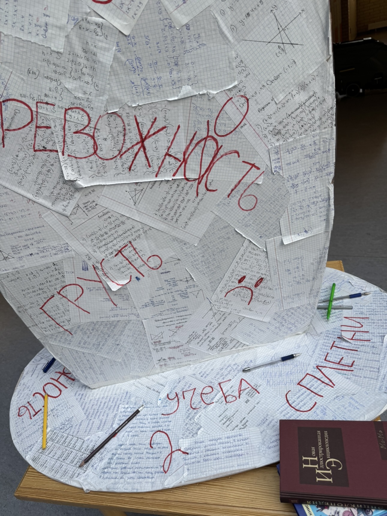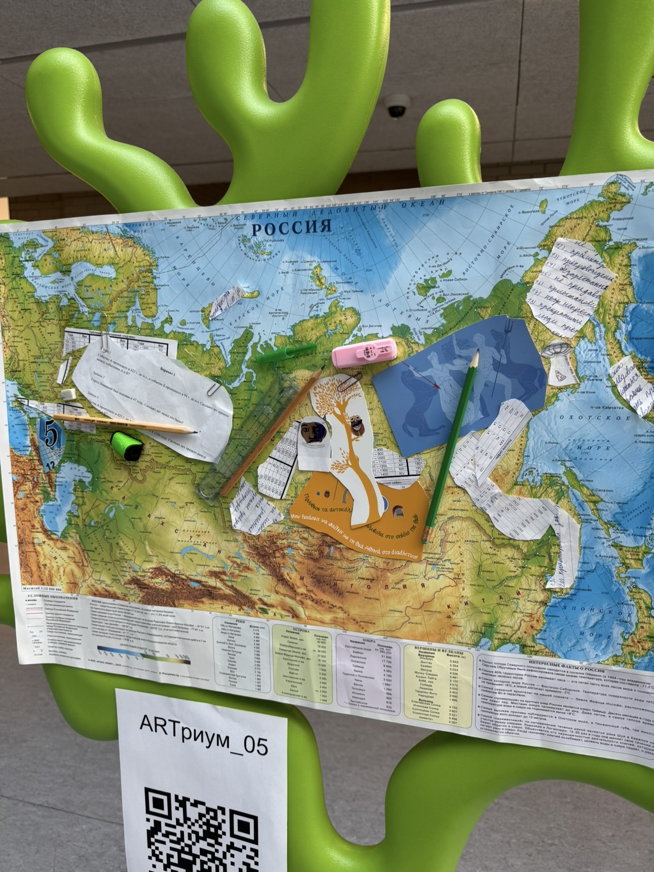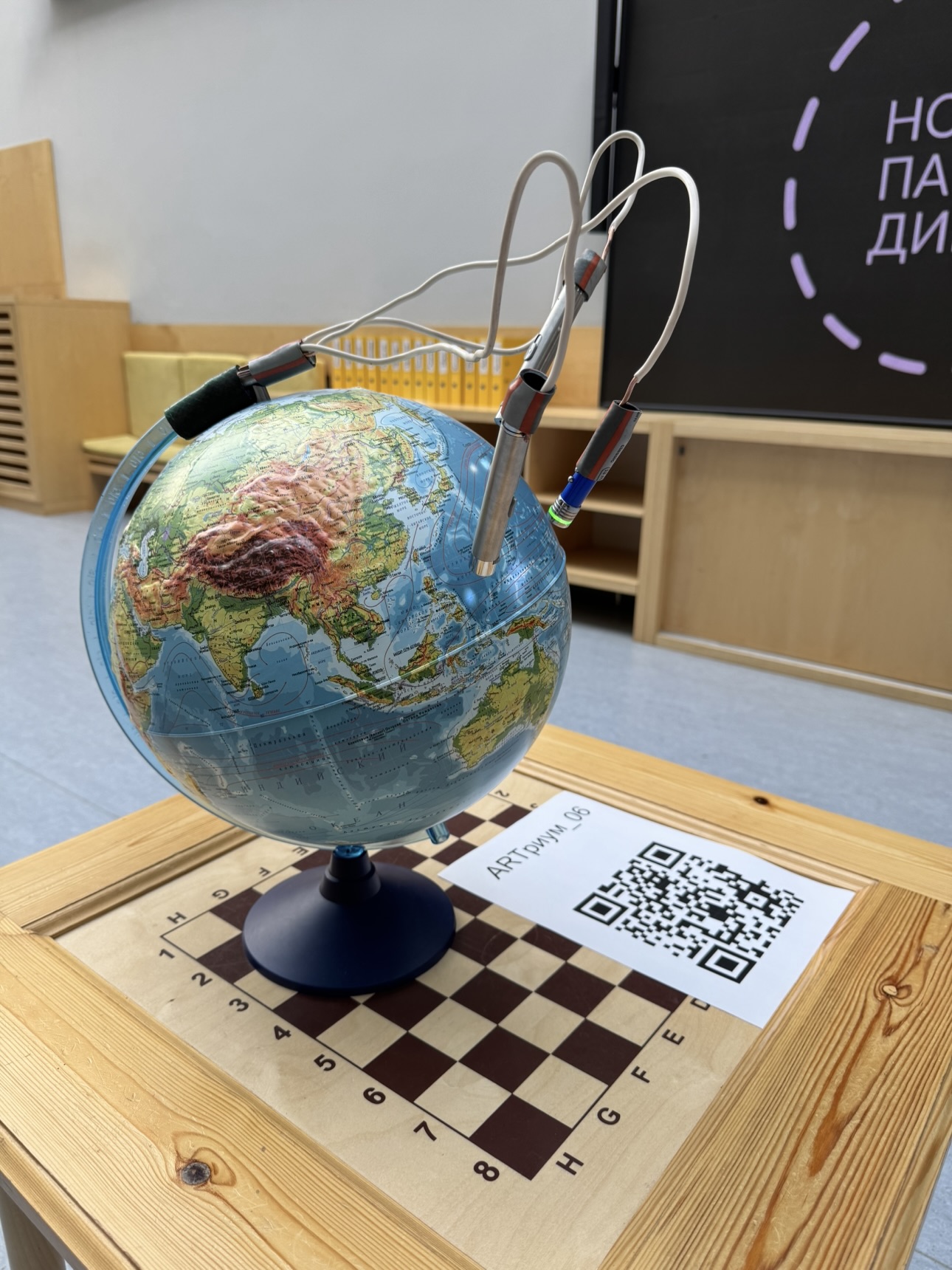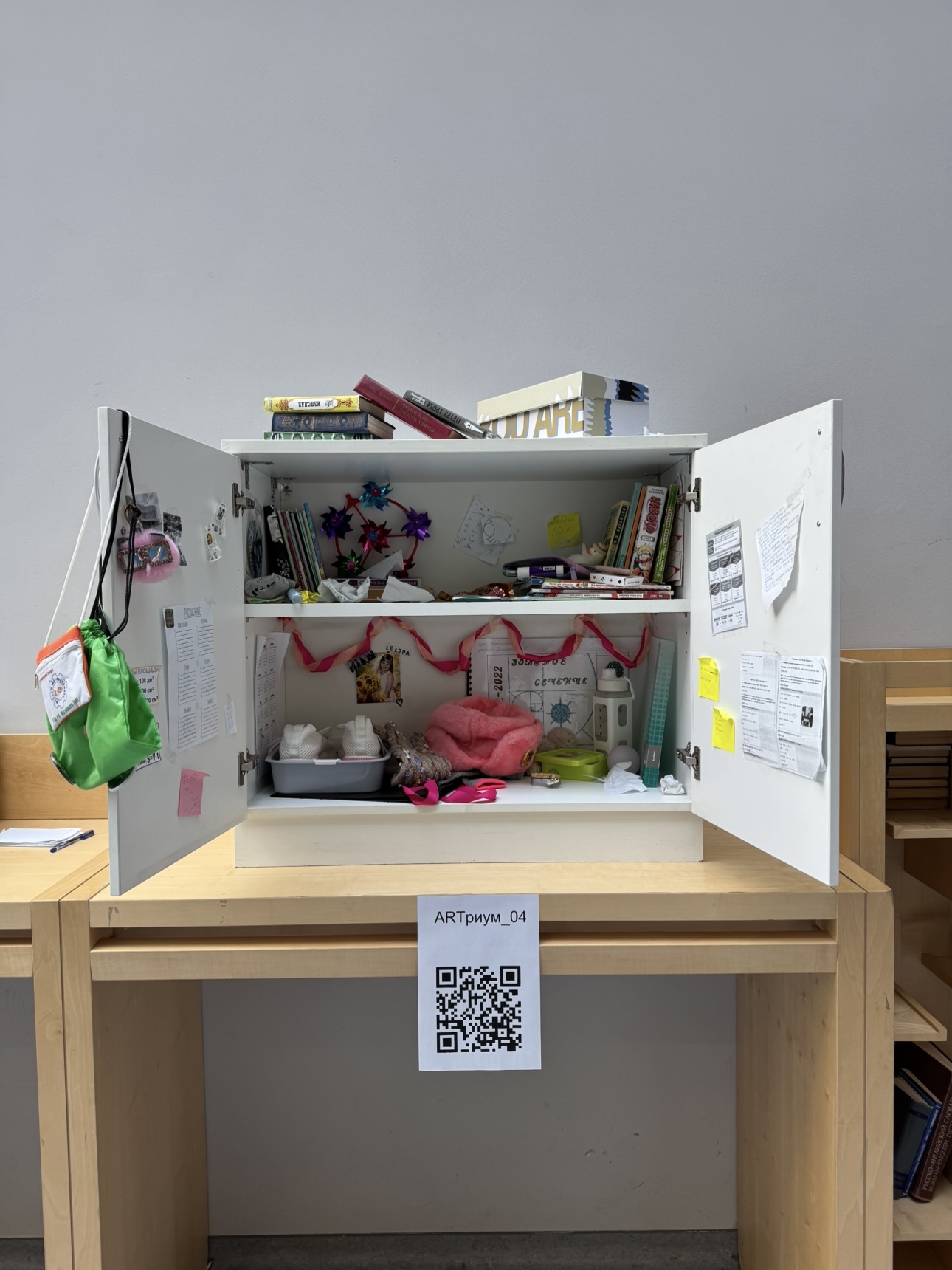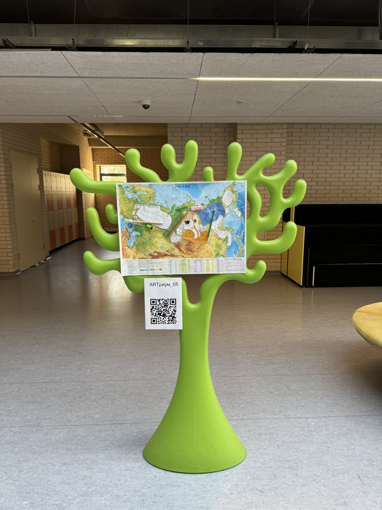 Арт-объект представляет собой инсталляцию из книг, сложенных по спирали, переходящих в экран, на котором демонстрируется уже видеоинсталляция. Этот минималистичный объект исследует тему цифровизации, идентичности и символизирует переход от традиционного к цифровому знанию. Книги, расположенные как ступени винтовой лестницы, символизируют путь познания — от привычных источников к новому уровню информации. На экране крупными буквами появляется слово «ШКОЛА», напоминающее культовый эффект из фильма «Матрица». Слова из ученических эссе о школе прошли семантическую обработку на платформе Advego, после чего была создана специальная программа, где эти слова, словно потоки информации, стекают по экрану постепенно кодируясь в единое понятие — «ШКОЛА». Арт-объект отражает, как школа соединяет физическую и цифровую реальности, создавая пространство, где знания, мысли и эмоции образуют единое целое.