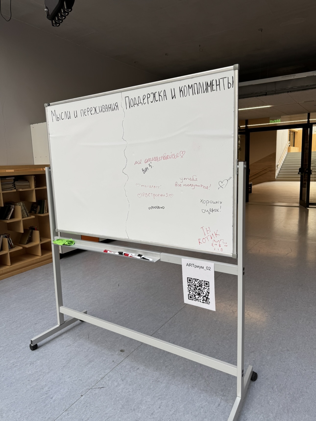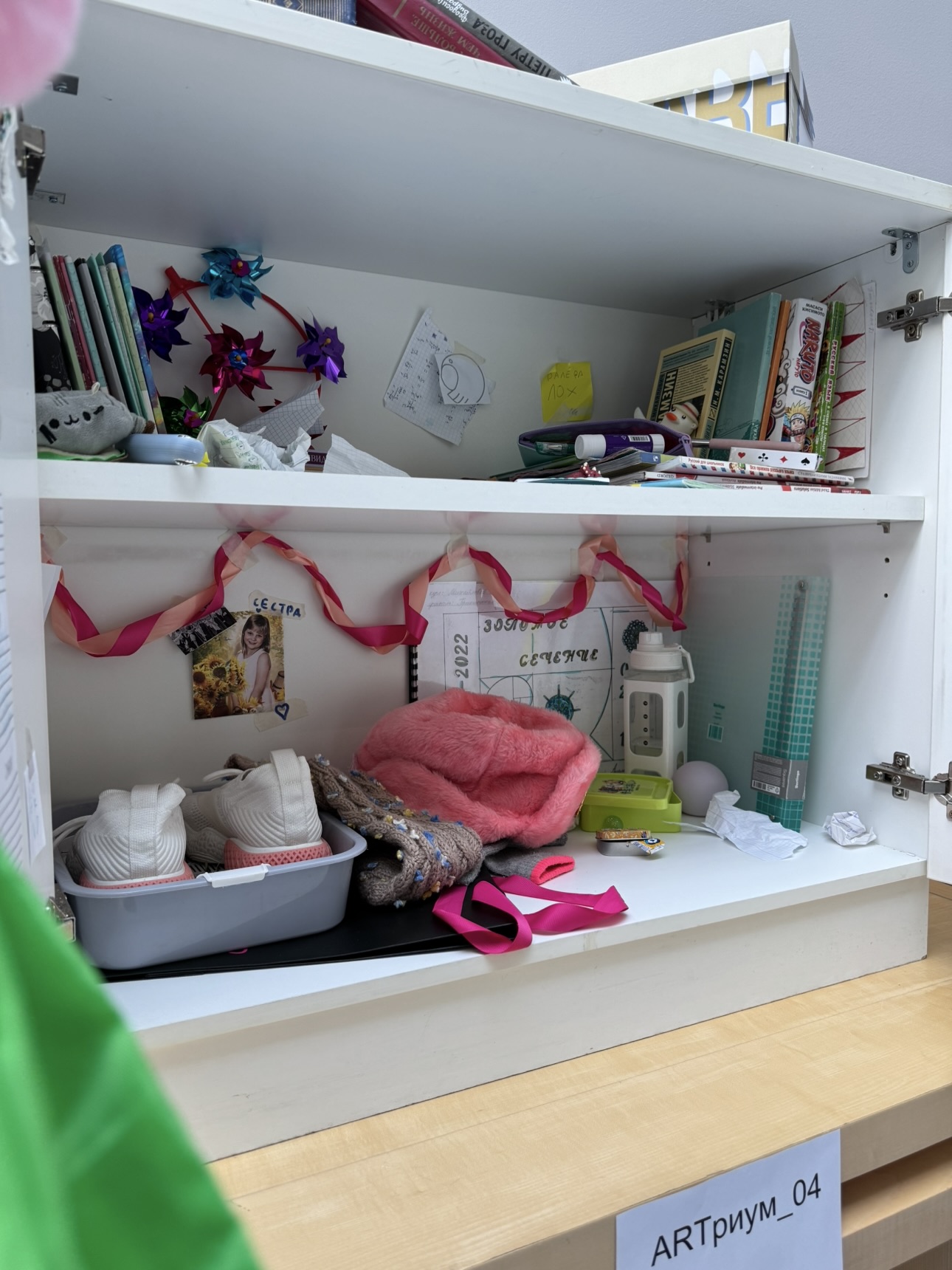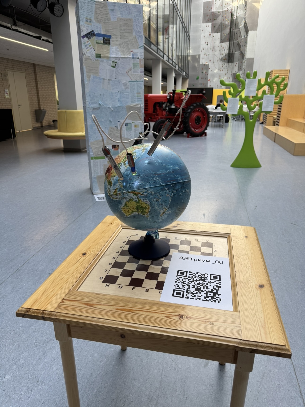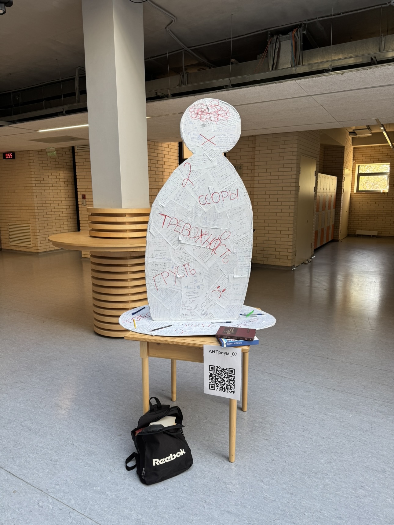 Арт-объект представляет собой инсталляцию из книг, сложенных по спирали, переходящих в экран, на котором демонстрируется уже видеоинсталляция. Этот минималистичный объект исследует тему цифровизации, идентичности и символизирует переход от традиционного к цифровому знанию. Книги, расположенные как ступени винтовой лестницы, символизируют путь познания — от привычных источников к новому уровню информации. На экране крупными буквами появляется слово «ШКОЛА», напоминающее культовый эффект из фильма «Матрица». Слова из ученических эссе о школе прошли семантическую обработку на платформе Advego, после чего была создана специальная программа, где эти слова, словно потоки информации, стекают по экрану постепенно кодируясь в единое понятие — «ШКОЛА». Арт-объект отражает, как школа соединяет физическую и цифровую реальности, создавая пространство, где знания, мысли и эмоции образуют единое целое.