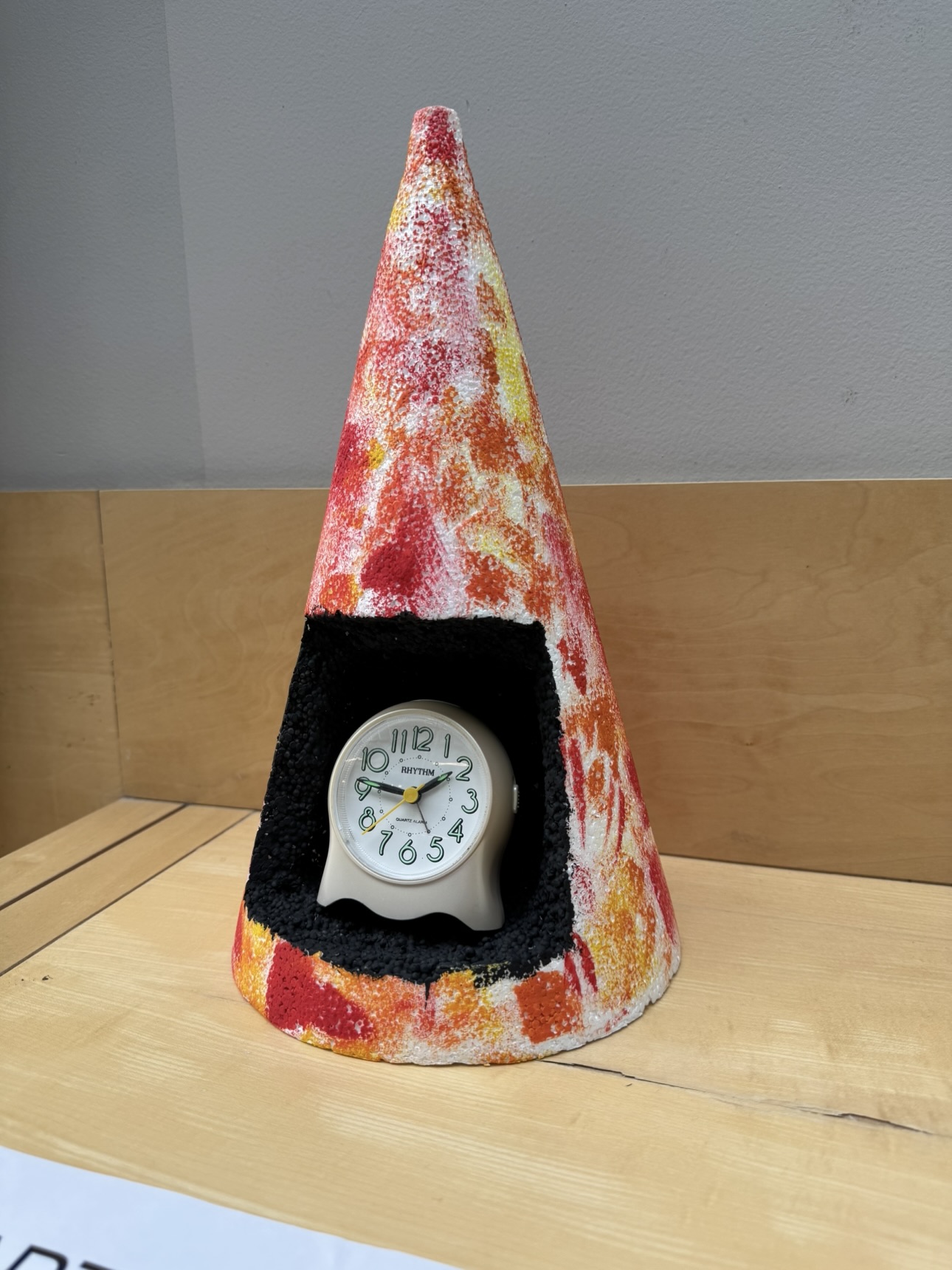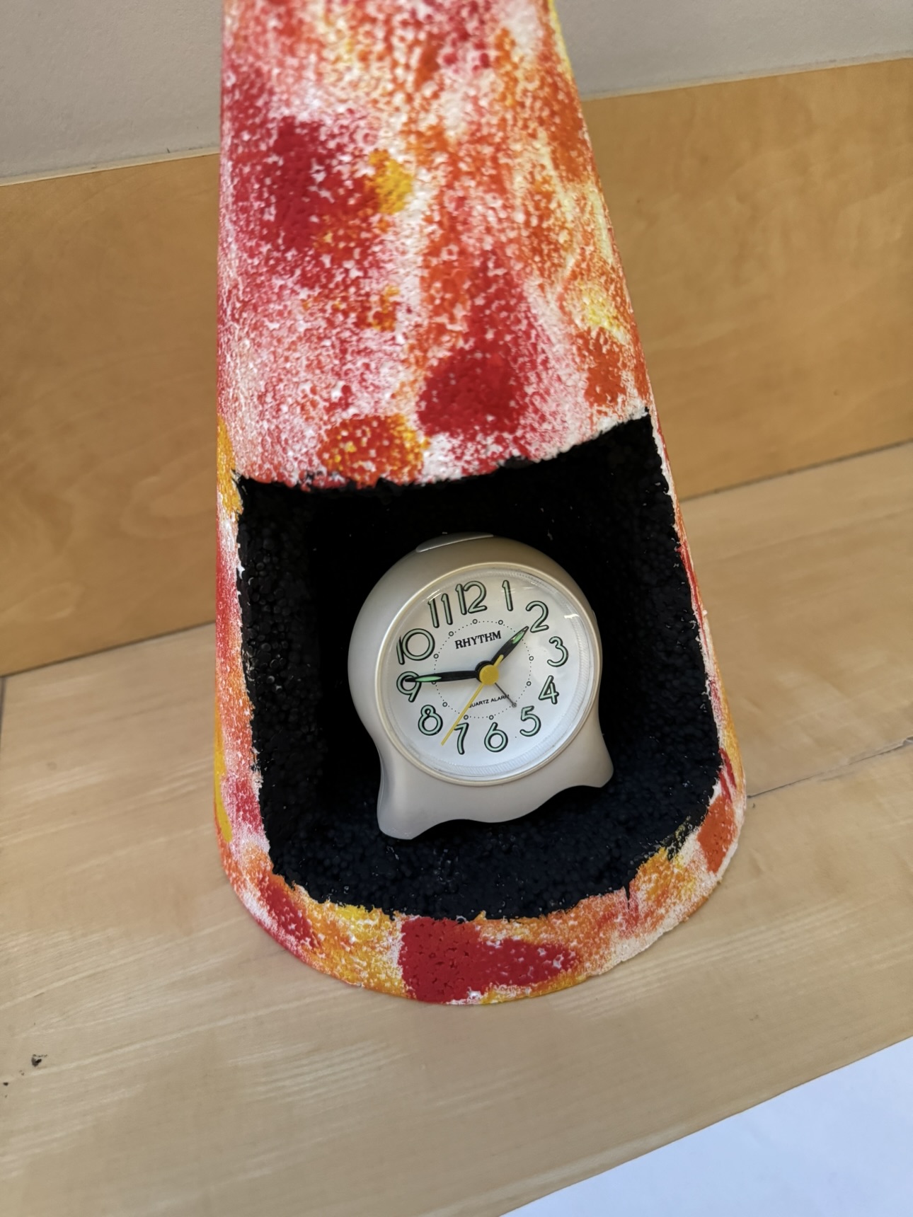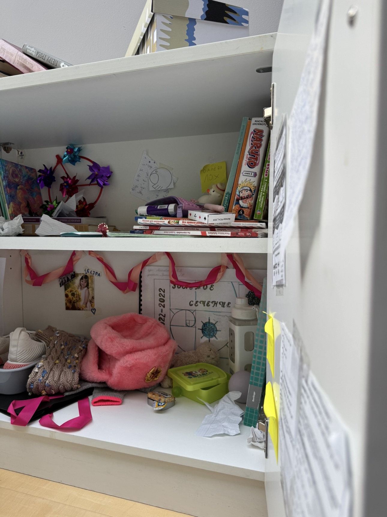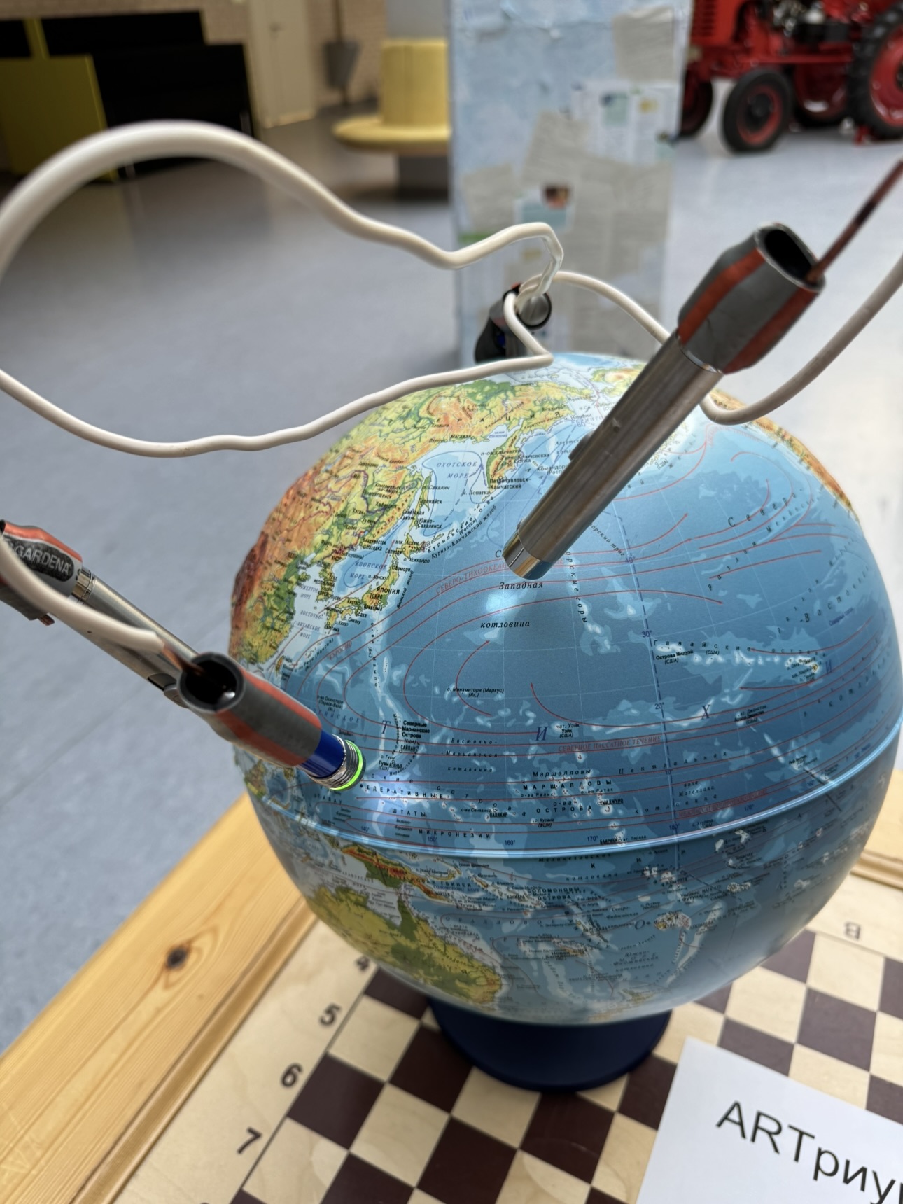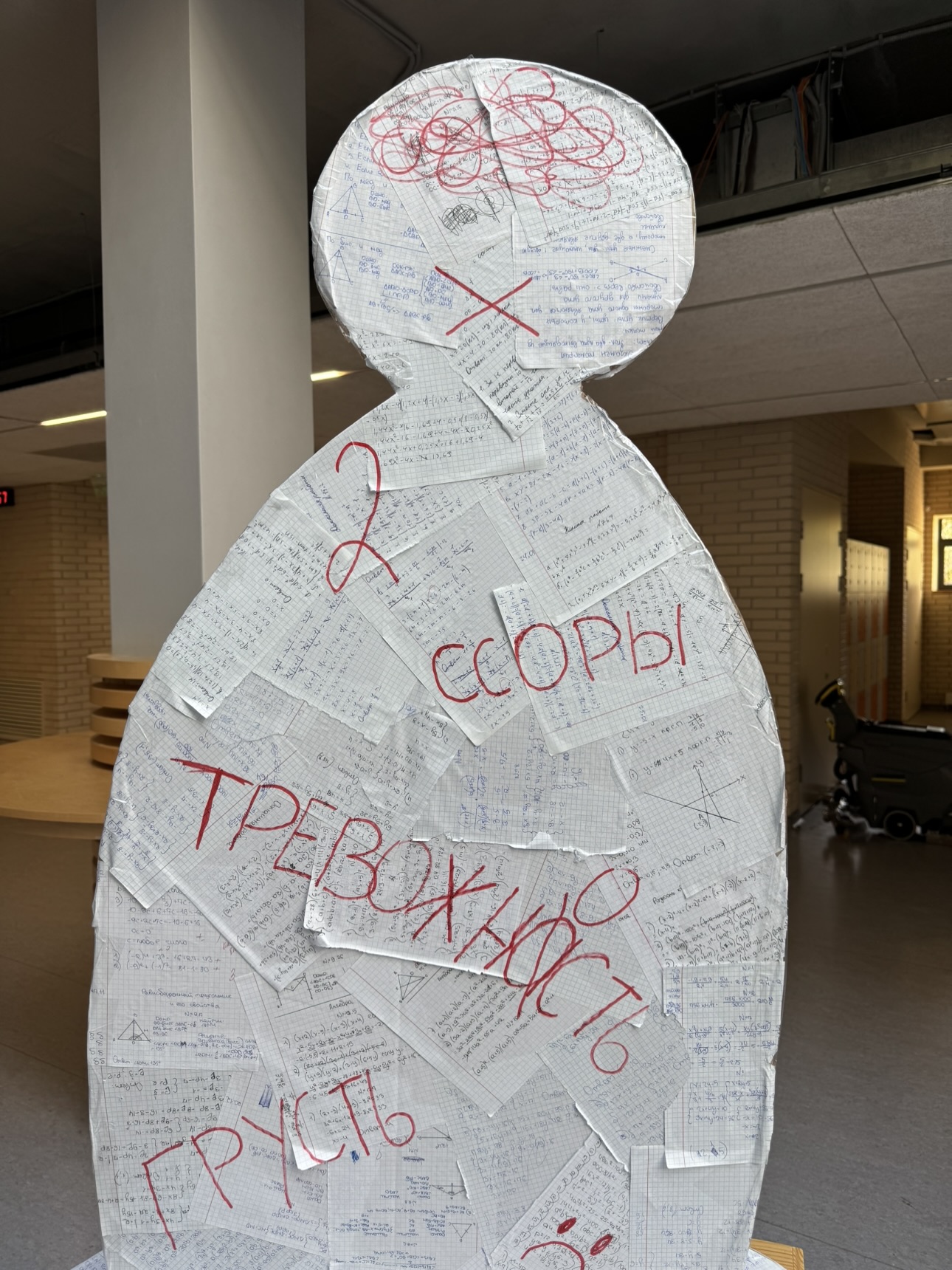 Арт-объект представляет собой инсталляцию из книг, сложенных по спирали, переходящих в экран, на котором демонстрируется уже видеоинсталляция. Этот минималистичный объект исследует тему цифровизации, идентичности и символизирует переход от традиционного к цифровому знанию. Книги, расположенные как ступени винтовой лестницы, символизируют путь познания — от привычных источников к новому уровню информации. На экране крупными буквами появляется слово «ШКОЛА», напоминающее культовый эффект из фильма «Матрица». Слова из ученических эссе о школе прошли семантическую обработку на платформе Advego, после чего была создана специальная программа, где эти слова, словно потоки информации, стекают по экрану постепенно кодируясь в единое понятие — «ШКОЛА». Арт-объект отражает, как школа соединяет физическую и цифровую реальности, создавая пространство, где знания, мысли и эмоции образуют единое целое.