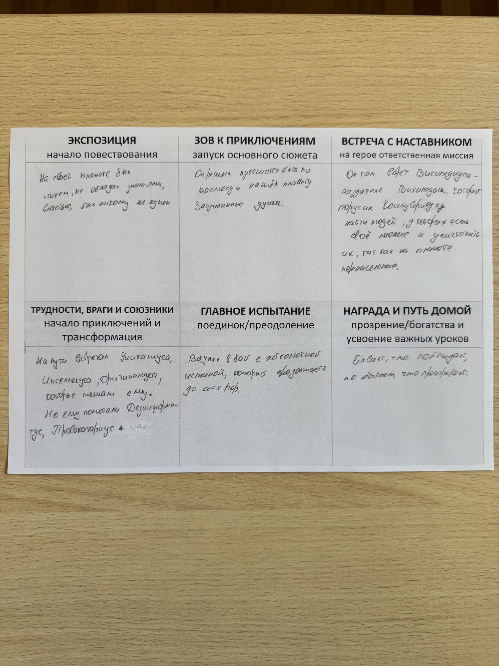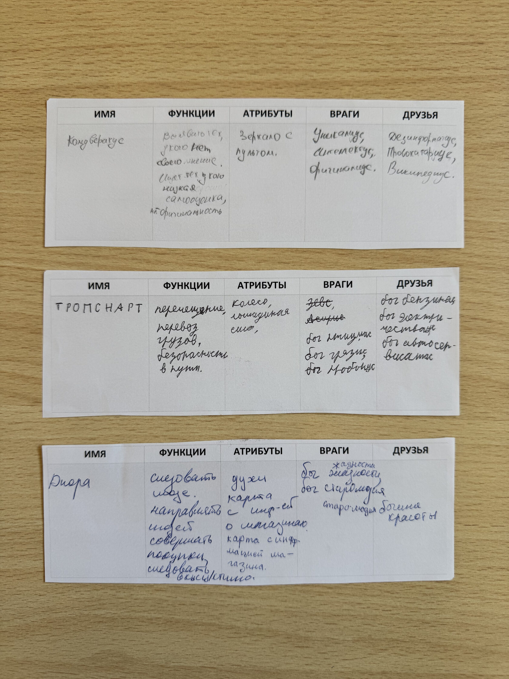 Смешанные команды создавали современных мифологических персонажей: продумывали их образ, функции, атрибуты, союзников и антагонистов. А затем, по структуре сказочного героя Проппа, писали миф: с экспозицией, испытаниями, поворотными точками и возвращением.