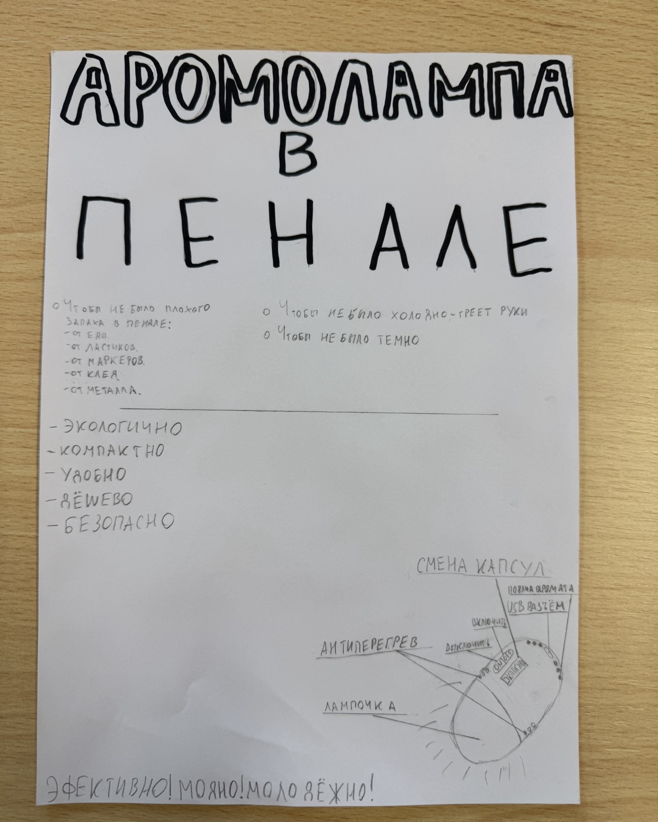 Мы провели необычный урок обществознания в 7 классе — изучали тему «Реклама» через практику. После теоретической части ребята разделились на три команды-рекламных агентства. Каждой группе достался несуществующий школьный товар: аэролампа в пенале, линейка с антистрессом и мини-утюг для тетрадей.