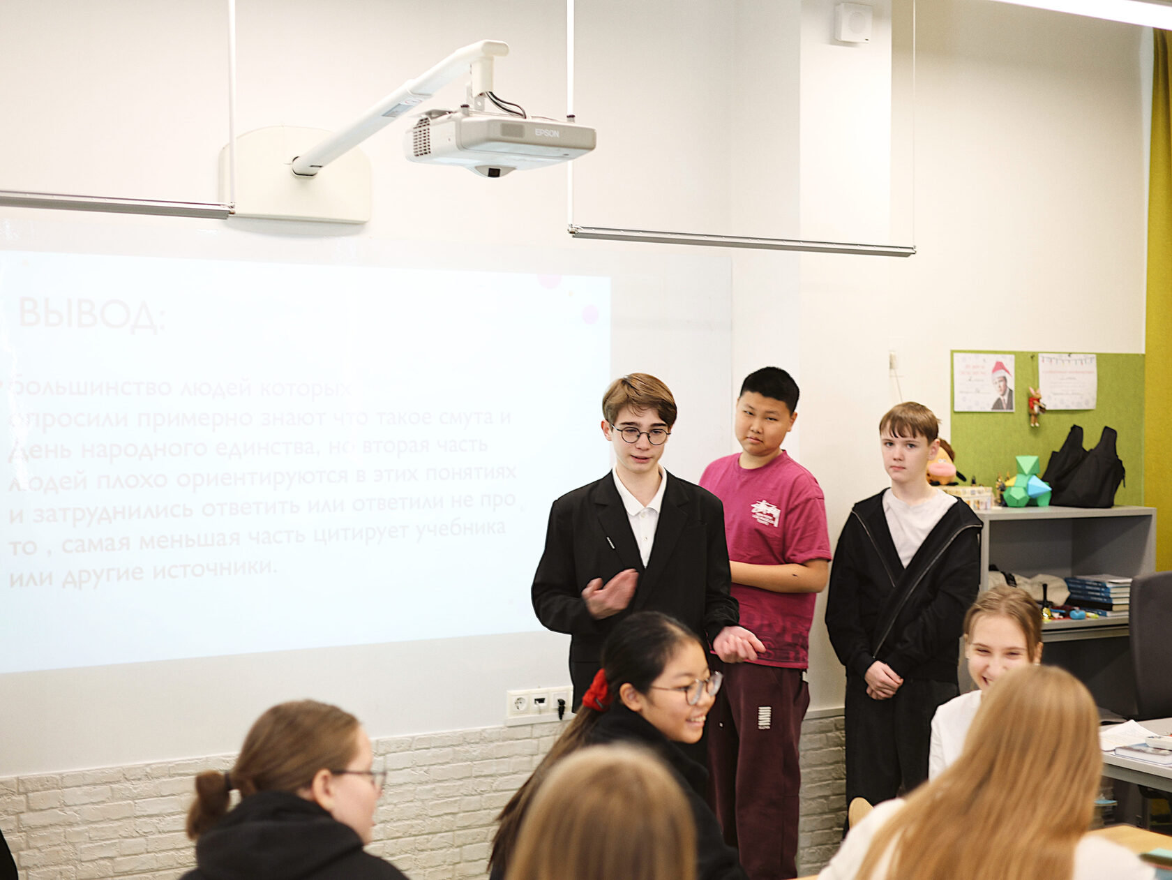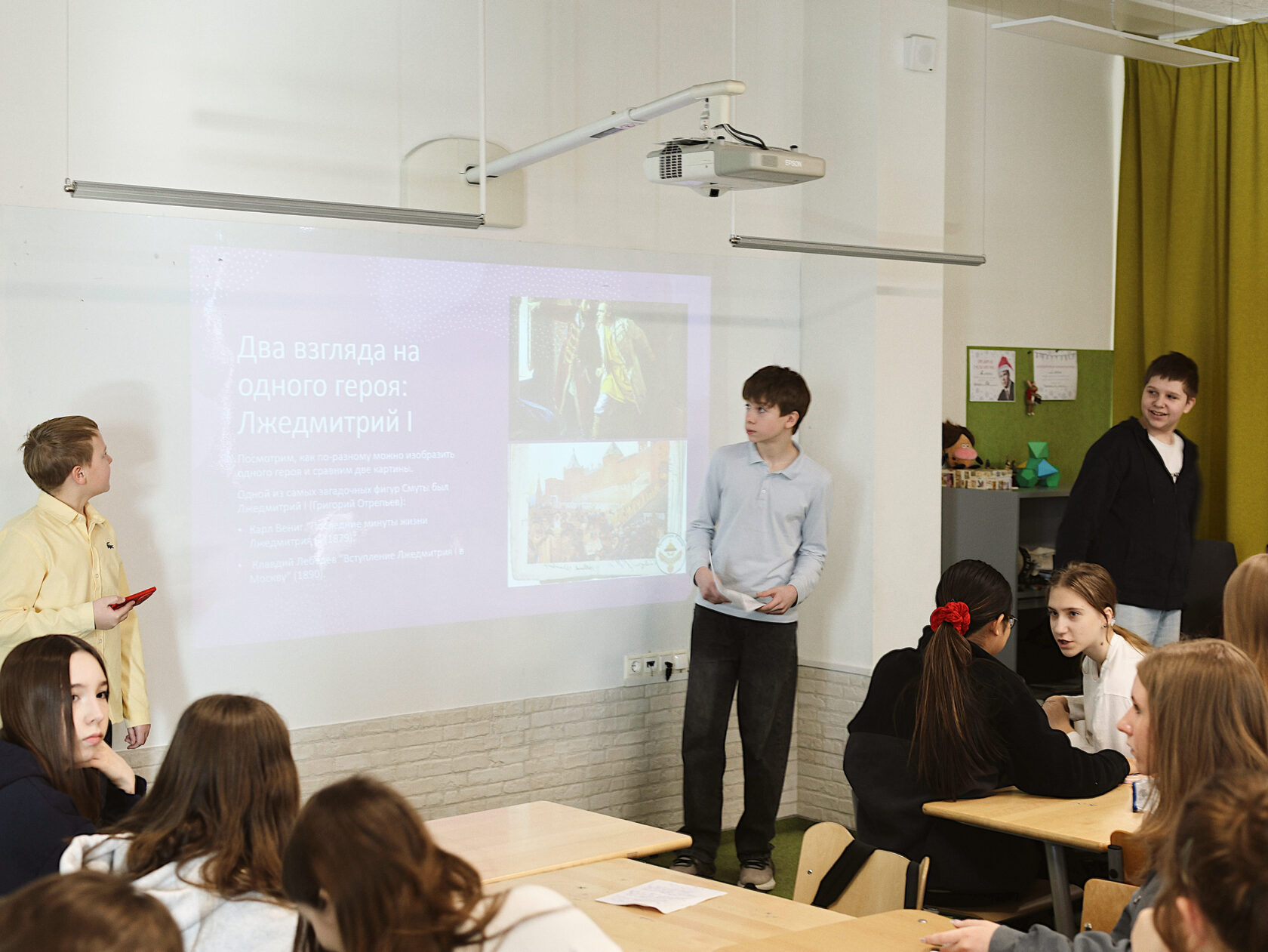 В 7 классе завершением изучения большого блока истории России — Смутного времени — стало многогранное проектное погружение. В течение трех недель пять команд в каждом классе решали собственные исследовательские задачи, чтобы собрать общую картину того, как живет память об этой эпохе сегодня.